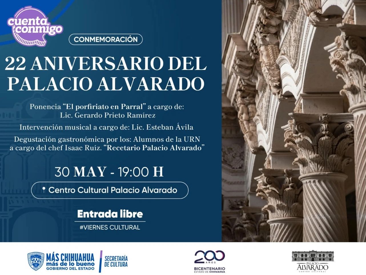 El 15 de agosto a las 19:00 horas como parte del Viernes Cultural de Palacio Alvarado con entrada libre.