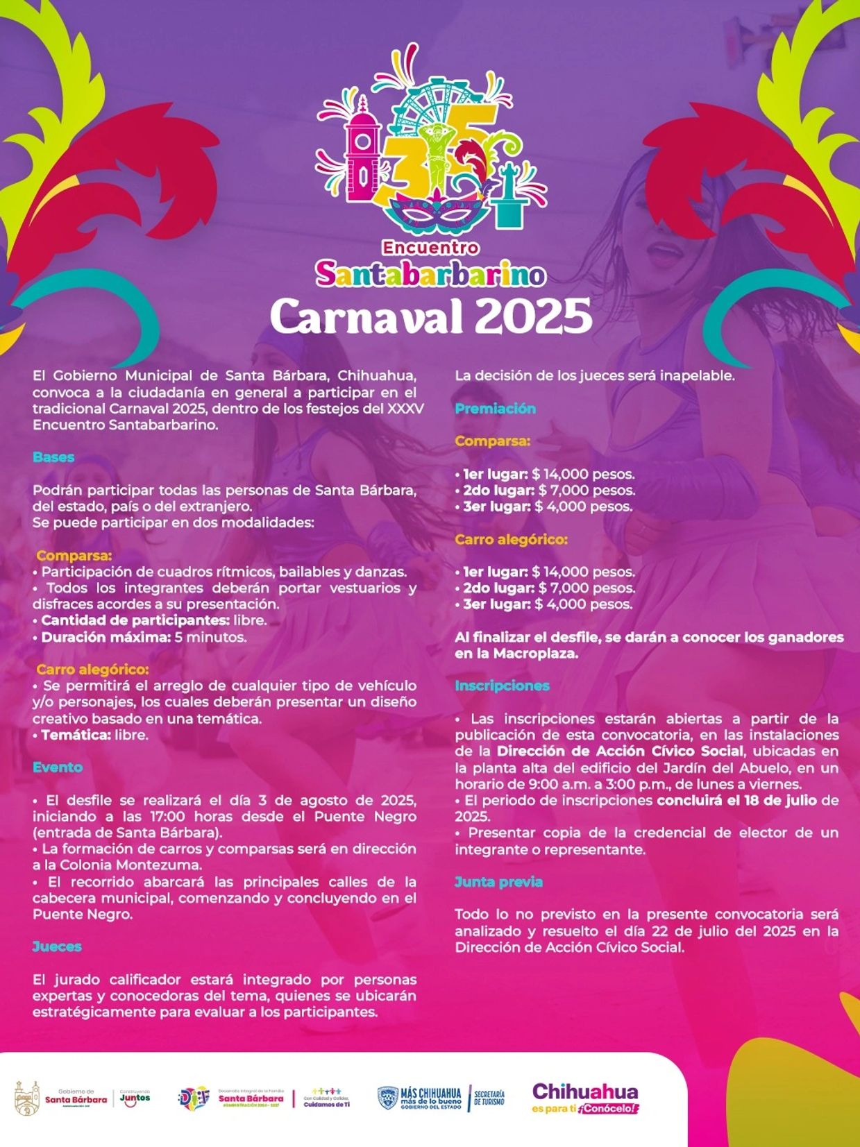 El Carnaval 2025 ya se empieza a sentir en Santa Bárbara y si te interesa participar, esta es tu oportunidad. ![]()